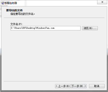 ⑦:出现“要导出的文件”对话框后,如图(2)所示,单击“浏览”按钮,并在“另存为”对话框中设置证书的保存路径及名称。