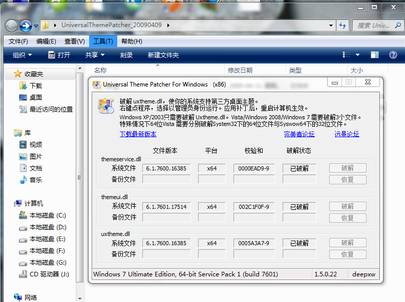 windows7主题破解工具:点此下载
