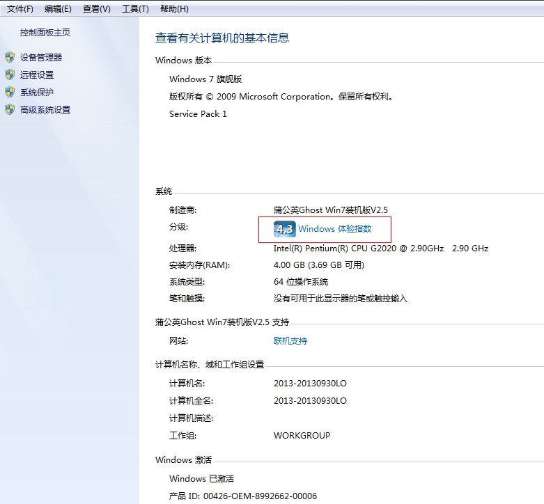 用鼠标右键点击桌面上的“计算机”图标,选择“属性”,点击其中的“Windows体验指数”。