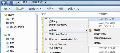 在选择可以共享的文件时,win7系统的操作与之前xp系统的操作是一样的,右键选择要共享文件夹,在弹出的右键菜单中选择特定用户网络共享即可,没有网络限制,在共享时,选择特定用户并设置好共享权限(读取、读/写),再点击“共享”即可,这样就能实现win7系统和XP系统间的文件共享了。