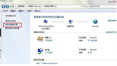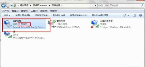 接下来我们依次进入控制面板——网络和internet——网络和共享中心——更改适配器设置,,看到多出一个名为“Microsoft Virtual WiFi Miniport Adapter”的无线连接2,表示开启成功。