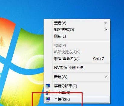 首先在桌面空白的地方单击右键,然后再弹出的选单中选择“个性化”。