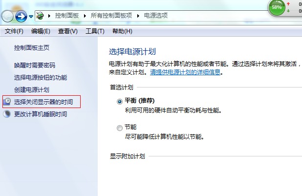 再在弹出窗口的左上角,找到“选择关闭显示器的时间”,然后点击。