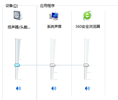打开电脑声音的合成器之后,我们就可以对现在开启的程序的声音进行调节了!