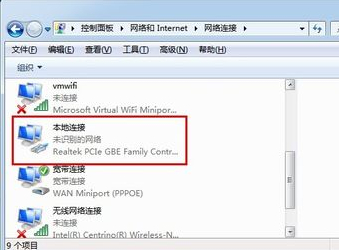 接下来我们就可以看到本地连接的选项了,用鼠标对准该图标,然后点击右键,找到属性的选项并点击进入。