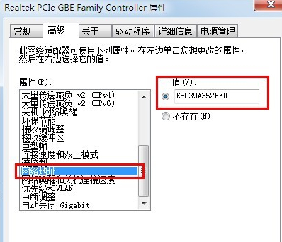 找到网络地址并单击,这个时候会在后面显示一个值,这个就是本机现在的MAC地址了,如果需要更改的话,我们直接进行修改即可。
