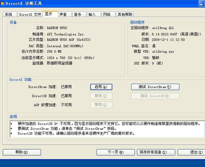 一:win+R,然后输入系统命令“dxdiag”回车,弹出DirectX 诊断工具窗口,点“显示”选项卡。 同样可以快速获取到显卡型号以及相关参数。