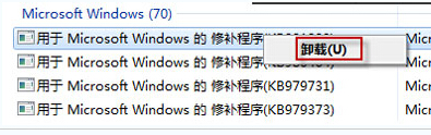 打开之后,我们会看到很多的安装补丁以及程序文件,这个时候我们需要做的,就是找到我们需要卸载的补丁,然后右键点击,选择卸载!这样就OK了!