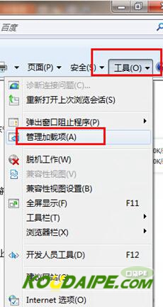 第二步:下载安装完之后,要在浏览器里启动插件,如图2,找到浏览器“工具”—“管理加载项”:如图2所示