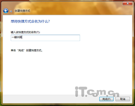 第三步:点击下一步,填写快捷方式名称,这里小编填写“一键休眠”方便辨认。