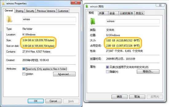 相比较Vista的庞大的体积(12G左右),Windows7的减肥工作做得很成功。在维持了Vista各种功能基础上,剪掉了近5G的体积,实属不易!虽然如此我们还是建议您在16G以上的磁盘分区安装Windows7,这样才能百分之百保证系统的稳定运行。当然如何你对 目前的体积还不满意,那你可以按照“系统减肥不是梦 Windows7轻松瘦身3个G”,再给你小7瘦瘦身。