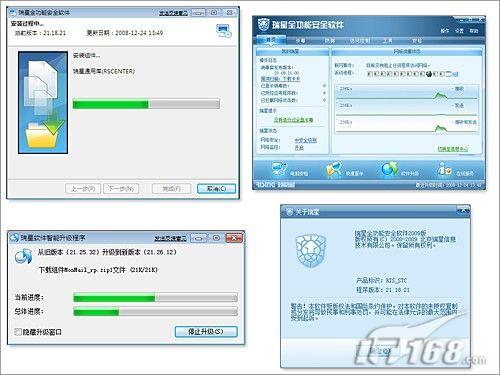 相比之下,瑞星2009则在安装测试中,表现不错。包括文件复制、模块启动、服务添加等各项步骤均工作正常。安装结束后,能够顺利地开启实时监控及各项辅助模块,病毒查杀也未发现异常。安装官方最新版卡卡安全助手6.0后,能够正常完成系统评分及漏洞扫描操作,软件升级没有问题。但同NIS 2009一样,安装结束后,无法自动关闭系统自带的防火墙组件,导致两者并存。但考虑到此时,瑞星防火墙能够正常工作。我们认为可以允许其进入下一环节测试,但应特别标注为“基本通过”。