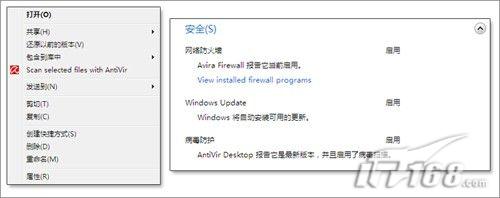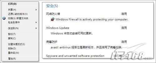 由于没有防火墙模块,avast的测试相对简单了一些。在随后的测试中,我们依次检测了杀毒软件关闭、病毒库过期对Action Center的影响,而评测结果令人满意。此外,avast同样能够为用户提供方便的右键快捷菜单。最终判定,通过!