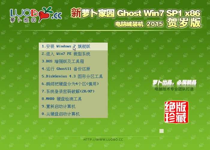 【绝版珍藏】新萝卜家园2015年最新ghost win7 sp1 x86贺岁版系统重磅面世!