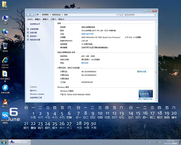 深度技术纯净版系统无任何OEM信息并完美激活windows7操作系统,这才是你的专属。