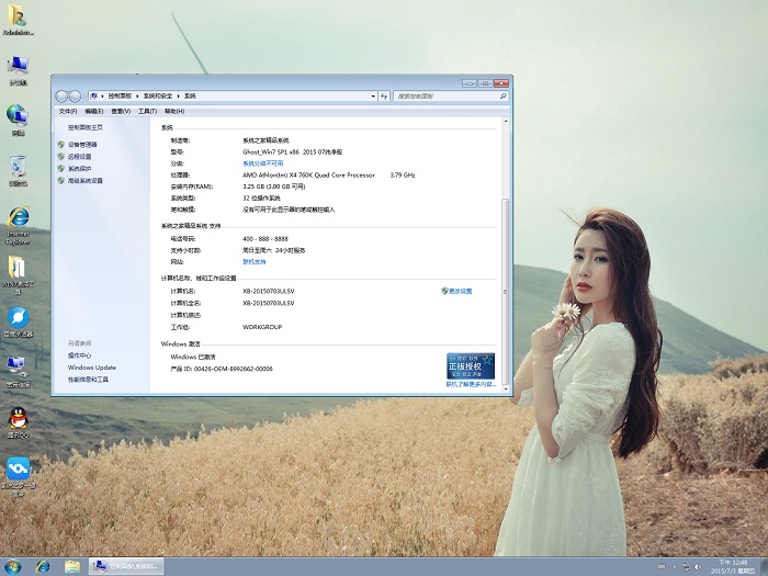 源安装盘采用微软官方Windows 7 Ultimate with Service Pack 1 (x86) - DVD (Chinese-Simplified) 操作系统,并进行永久激活;