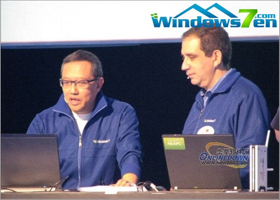 2009年梁念坚和微软全球副总裁Mike Nash在Win7中国发布会上