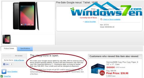 只是目前Staples的在线商店仅有16GB的谷歌Nexus 7平板有售,价格为249美元。而在Google Play上用户则可以同时预订到16GB和8GB的版本。此外,该平板还将在七月十九日登陆英国市场,并且已经开始接受预订,但含税价格达到了199英镑,约合人民币1970元左右,相比谷歌给出的249美元(约合人民币1584元)的售价高出了不少。