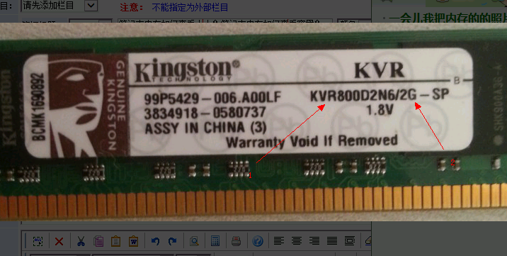 图3中1为内存型号:KVR800,就是金士顿800型号,内存大小为2GB