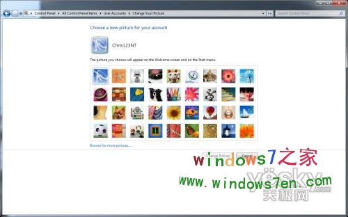 系统中所有新的用户图片都可以在你的账号中使用,其中一些非常不错,而超过一半的图片在目前的Vista和先前的Windows 7都已经见过。