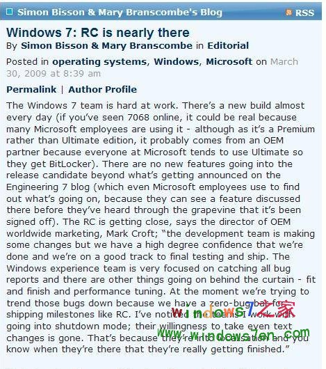 微软官方已经确定windows 7 rc即将完成,业界人士猜测将可能在本星期内发布给测试者,看下图可以看出来近日封装的是windows 7 Build 7074而传闻Windows 7 RC将会是windows 7 build 7075,星期五将会有windows7 Build 7077!