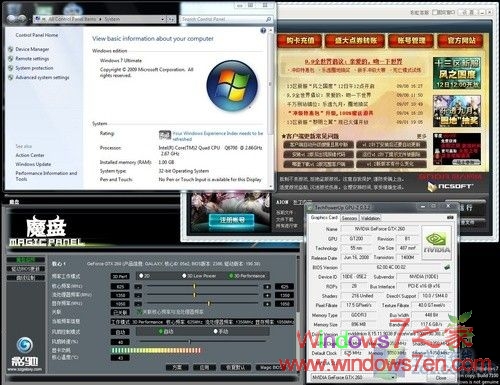 《永恒之塔》是不少朋友喜欢的一款网络游戏,尽管白玉微瑕,但对国内消费者来说它依然可以说是一款非常优秀的网络游戏。从官方推荐游戏配置来看,《永恒之塔》并不支持WINDOWS7这个操作系统,这对喜欢这个游戏的WINDOWS7用户来说,显然是个麻烦。那有没有办法改变这一点呢?在这之前,不能肯定,但笔者自己亲自用影驰GTX260+上将在WINDOWS7中试验过《永恒之塔》后,这种麻烦可以说已经成为了历史。