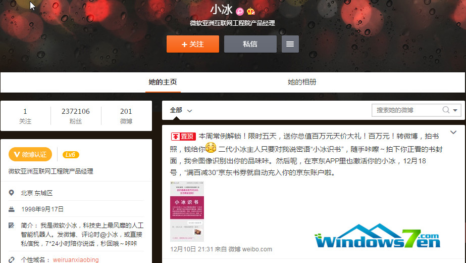 Windows7之家:微软小冰的独白:我能够识书啦,要书友?快来找我吧微软12月10日称,微软人工智能机器人,微软小冰更新了全新的技能,那就是小冰识书,该全新技能赋予了小冰能够认