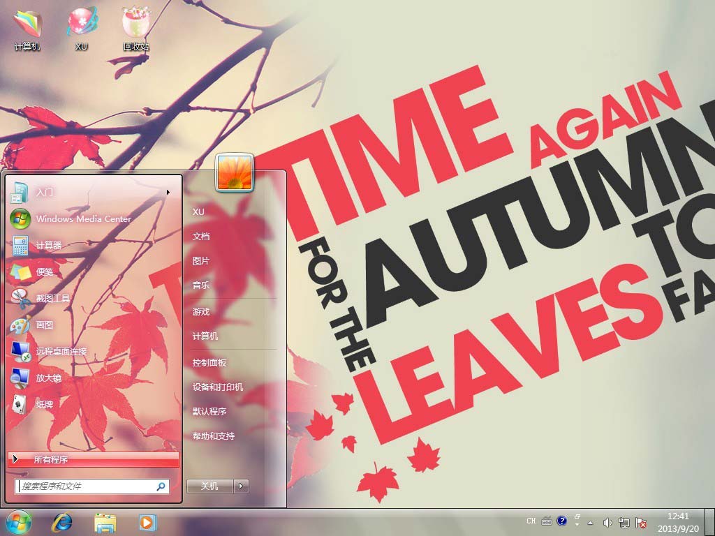 这是一款非常柔美的枫叶主题,主题采用了淡黄加红色的枫叶,显得朦胧而柔美,整体效果小编感觉非常棒。