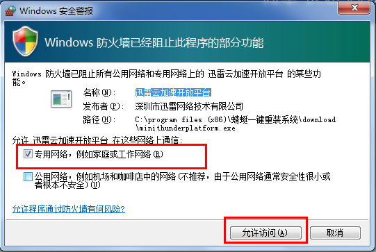 打开安装好的一键重装软件,点击完成安装(若出现防火墙提示,请点击解除阻止(XP系统)或允许访问(Win7系统));