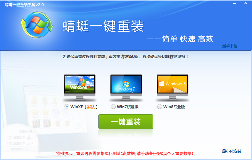 蜻蜓一键重装系统步骤非常简单快捷,简单到只需要操作四步,就能完成蜻蜓一键系统重装,蜻蜓一键重装系统步骤不需要用到繁琐的光盘与U盘等第三方载体工具,只需要有网轻轻点击鼠标就能完成,即使是没有任何基础的小白用户也能轻松上手蜻蜓一键系统重装软件,下面请看win7之家小编准备的图解教程。软件下载:http://www.958358.com/win7ghost/