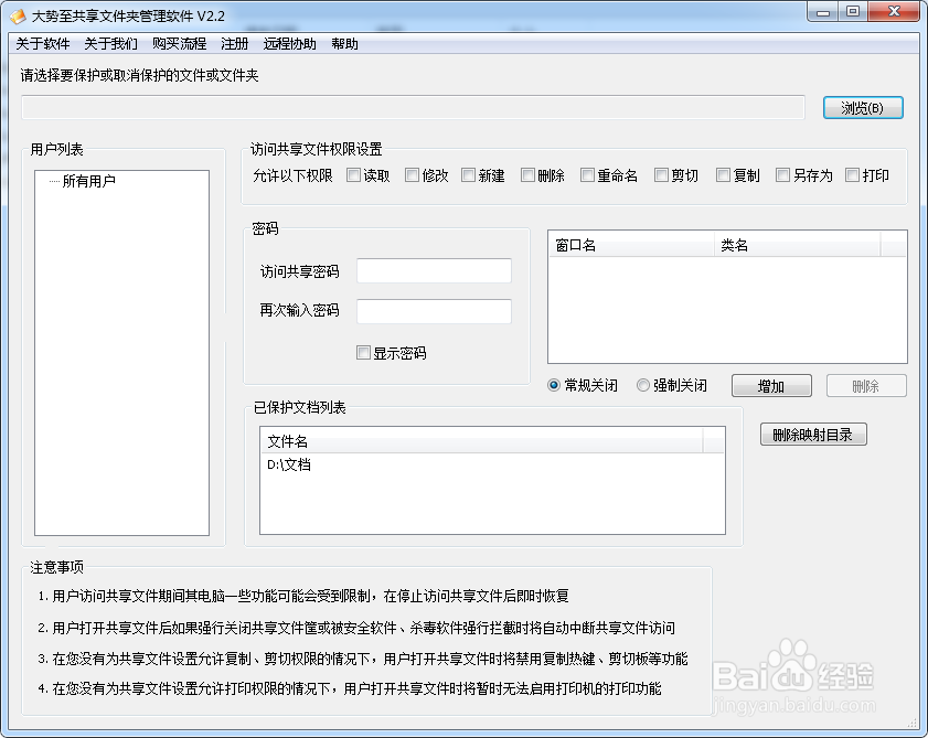 至此设置完毕,以后你每次访问共享文件就不需要输入密码了。但是相应的,共享文件的安全性也有所降低,如何保护共享文件安全呢?这就需要专门的共享文件管理软件来实现了,例如有一款“大势至共享文件夹管理软件”(下载地址:http://www.grablan.com/gxwjjm.html)就是这样一款软件,通过将本系统安装在设置共享文件的电脑或服务器上,就可以全面监控局域网用户对共享文件的各种访问操作,可以只让打开共享文件而禁止将共享文件另存为本地、可以只让修改共享文件而禁止删除共享文件、只让读取共享文件而禁止复制共享文件,同时还可以为共享文件设置访问密码、为不同用户分配不同访问权限等,从而实现了共享文件的精确、有效和严密管理。如下图所示: