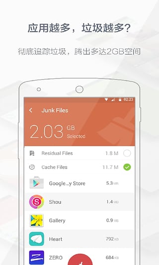 极加速是一款手机清理工具,强迫症患者必须每天清理加速手机,极加速就正好适合你,不root也能管理内置软件。界面简单明了,功能强大,操作简单,是你手机必备的软件