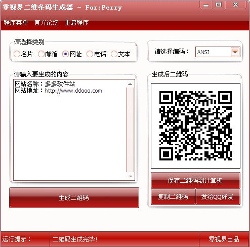 零视界二维条码生成器是一款绿色免费的的二维码生成工具。软件功能强大,简单易用,只需将您需要展现的信息写入指定区域,点击生成即可。