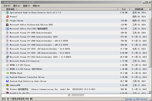 卸载与清理工具:GeekUninstaller1.3.1.38 高效快速,小巧免费。它的界面非常简单,就一个已安装软件的列表,右键点击软件,即可进行相应的操作,如卸载、强制卸载、删除条目、注册条目、安装文件夹、程序网站和通过谷歌搜索软件相关信息。