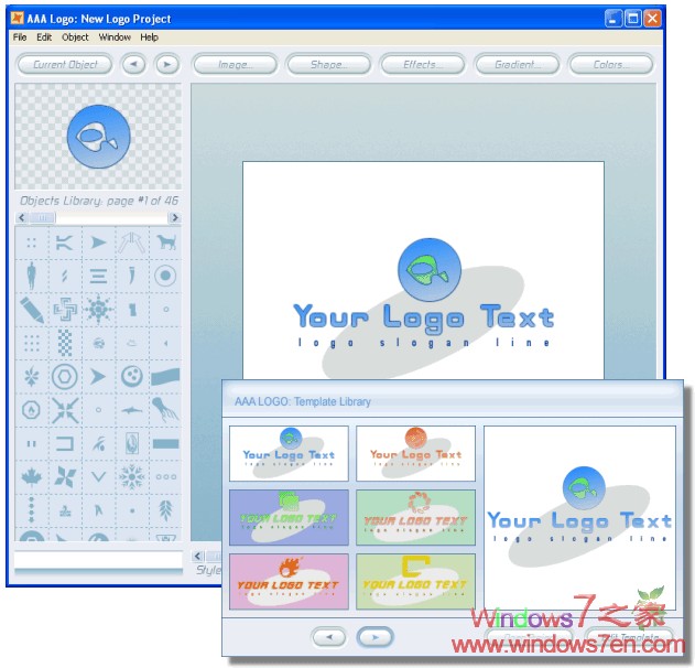 AAALOGO是一个功能强大的Logo设计软件,提供100余种模板,2080多种素材。所有的素材都是向量图,可以方便的放大缩小。你也可以自己创作素材,用于设计。虽然它不支持中文字体,但