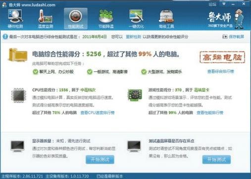 鲁大师拥有专业而易用的硬件检测,不仅超级准确,而且向你提供中文厂商信息,让你的电脑配置一目了然,拒绝奸商蒙蔽。它适合于各种品牌台式机、笔记本电脑、DIY兼容机,实时的