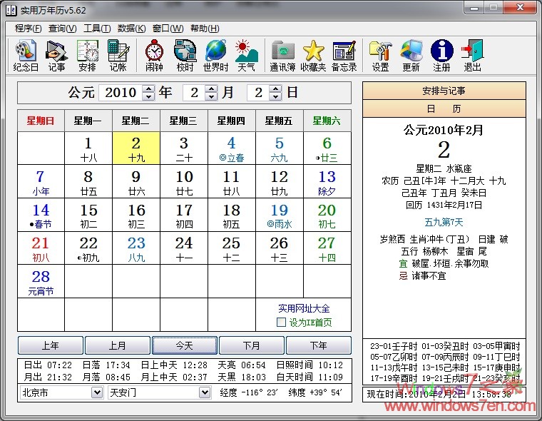 实用万年历5.7为绿色软件。包括公农历节日、节气、干支(生辰八字)、生肖、星座、出梅入梅、九九三伏以及中国传统黄历的内容等。软件集成了世界时间、闹钟定时提醒、通讯簿