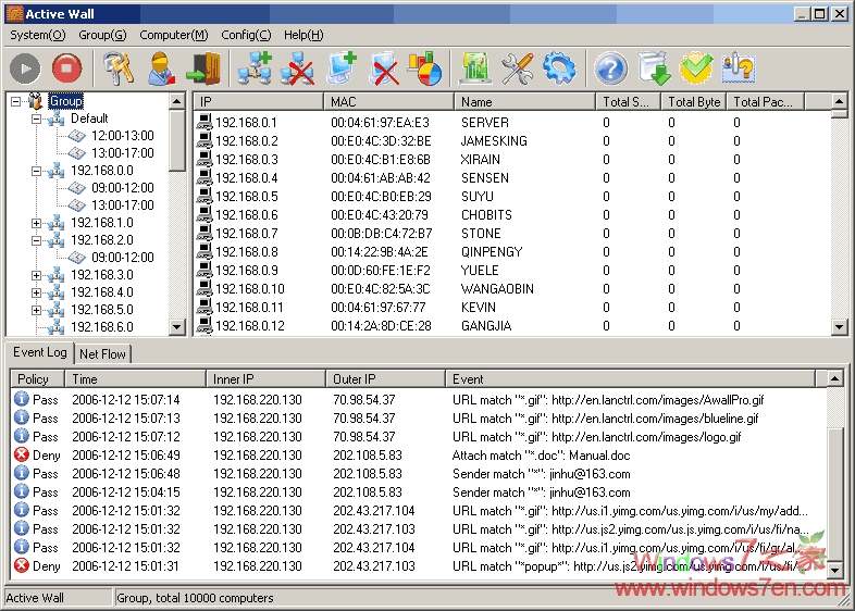 免费的流量监控软件,提供详细的流量统计、流量显示功能,最大可监控1000台电脑。可实时显示每台电脑的IP地址、MAC地址、电脑名称、发送速度、接收速度、收发速度、发送字节、接