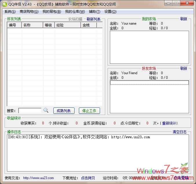 QQ伴侣2.43绿色版下载QQ开心农场必备武器该版本支持Windows7。无需兼容模式运行。QQ农场伴侣2.43更新内容:1、增加了自动购买种子的功能2、增加了仓库果实锁定的功能3、增加了定