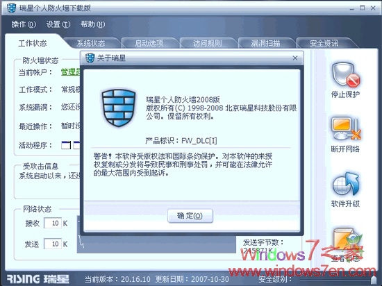 瑞星个人防火墙2009版,针对目前流行的黑客攻击、钓鱼网站、网络色情等做了针对性的优化,采用未知木马识别、家长保护、反网络钓鱼、多账号管理、上网保护、模块检查、可疑文件