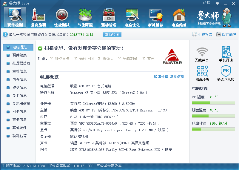 鲁大师硬件检测软件,鲁大师3.60.13.1028最新绿色无广告版免费下载
