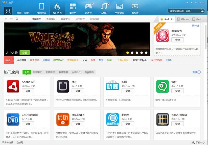 windows7之家提供:91助手V5版本是一款通过电脑管理iPhone、iPad、AndroidPhone、AndroidPad等多种智能设备的PC端软件,全面支持苹果、安卓等智能手机操作系统。使用91助手V5版,通过电脑