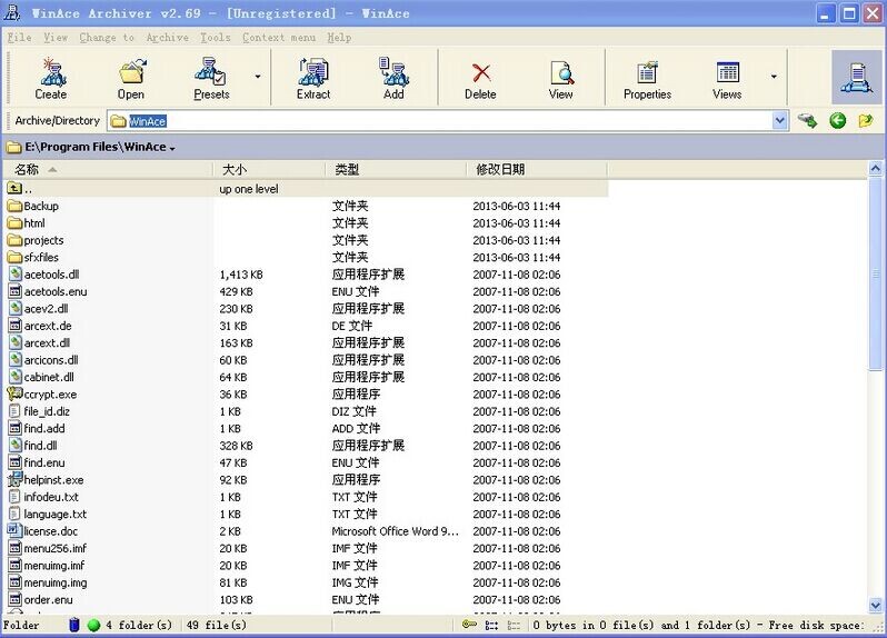 windows7之家提供:WinAce一款支持格式丰富的压缩和解压缩程序。功能及支持格式相当齐全,功能方面包括压缩与解压缩之外、还有分片压缩、加密功能、支持鼠标右键快显功能,建立