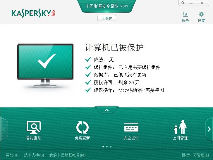 windows7之家提供:卡巴斯基安全部队为用户提供针对病毒、木马、垃圾邮件、黑客及其它各类恶意威胁的独到保护。其创新的数字安全混合保护技术,融合了创新的云安全技术和先进的反